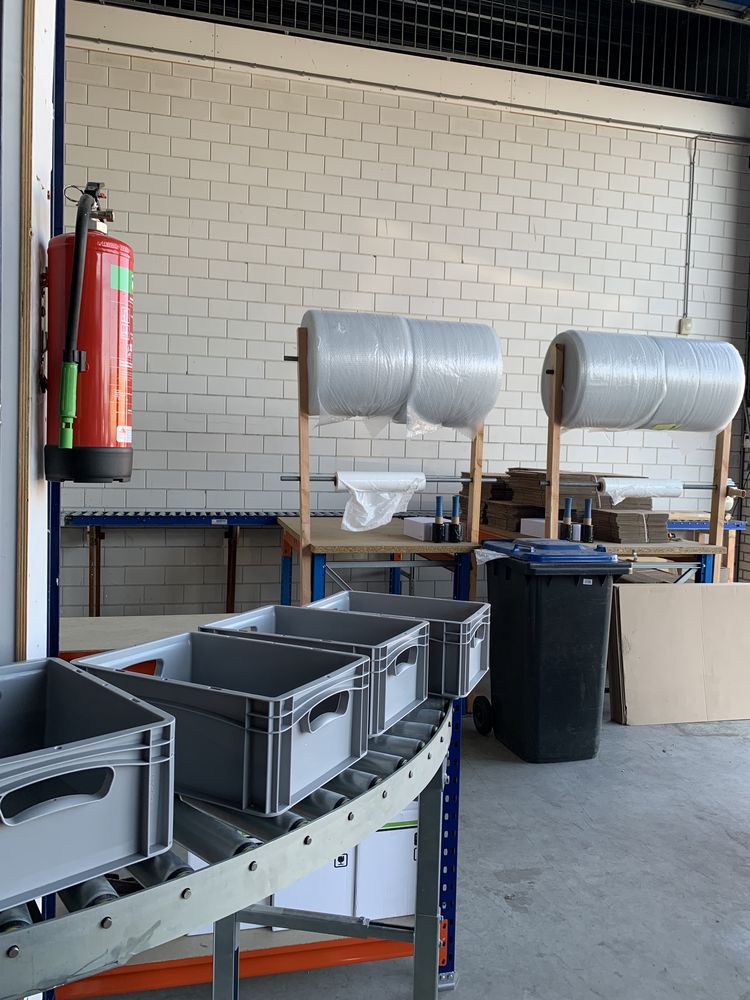 La construction et l'organisation d'un entrepôt entièrement nouveau est une tâche considérable ! Néanmoins, l'équipe de Wovar fait un excellent travail de reconstruction. Mercredi, les étagères ont déjà été montées et l'entrepôt se remplit petit à petit. Le convoyeur à rouleaux est presque terminé et doit encore être testé. Nous espérons être en mesure d'offrir à nos clients une gamme complète et diversifiée de produits dès que possible. Les premières commandes devraient être expédiées dans le courant de la semaine prochaine !