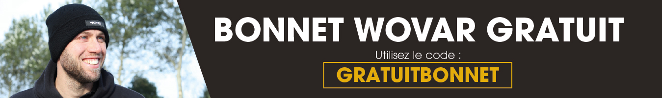 Malgré le temps hivernal, vos projets de bricolage ne doivent pas s’arrêter. Chez Wovar, nous savons mieux que quiconque que le bricolage ne s’arrête jamais, quelle que soit la météo. C’est pourquoi, cette semaine, vous recevez un bonnet Wovar GRATUIT d’une valeur de 20,00 € pour toute commande avec un montant minimum de 95,00 €.